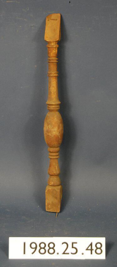 Single turned stair baluster. Has bulbous motif. Angle-cut both ends. Made of ash wood. Varnished. Type: Inscriptions or Markings: Manufacturer: Place of Manufacture: . Design motif: Bulbous Style: Finish: Varnished