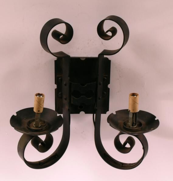European Revival style steel wall bracket. Shades: Unknown Fuel: Electric Finish: Black