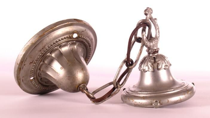 Colonial Revival style brass ceiling pendant. Scallop and bead canopy. Shades: 4" electric Fuel: Electric Finish: Other