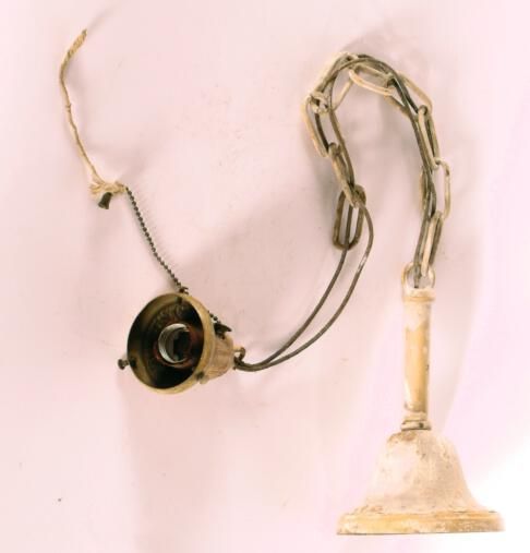 European Revival style brass ceiling pendant with pull chain. Shades: 2 1/4" Fuel: Electric Finish: Polychrome