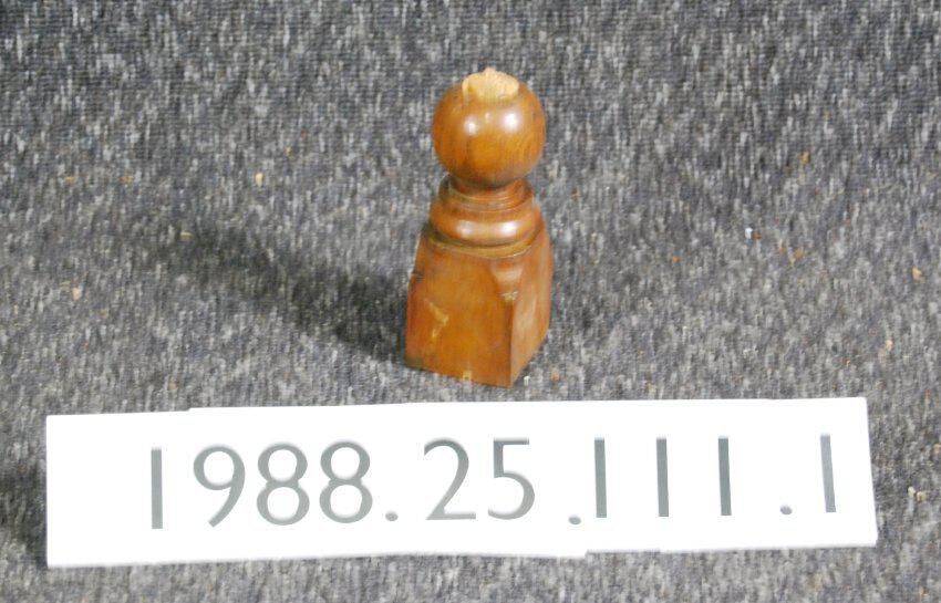 Single turned stair baluster. Truncated at one end. Made of ash wood. Varnished. Found in box with parts from Balustrade. Type: Inscriptions or Markings: Manufacturer: Place of Manufacture: . Design motif: Style: Finish: Varnished
