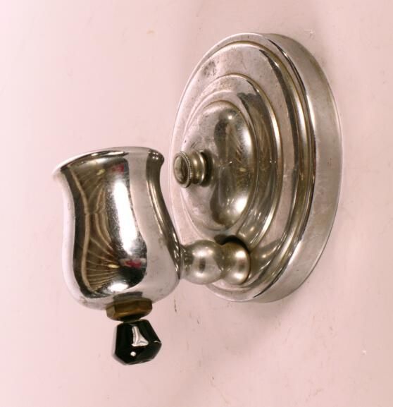Art Deco style brass wall bracket. Black glass faceted switch. Shades: None Fuel: Electric Finish: Chrome