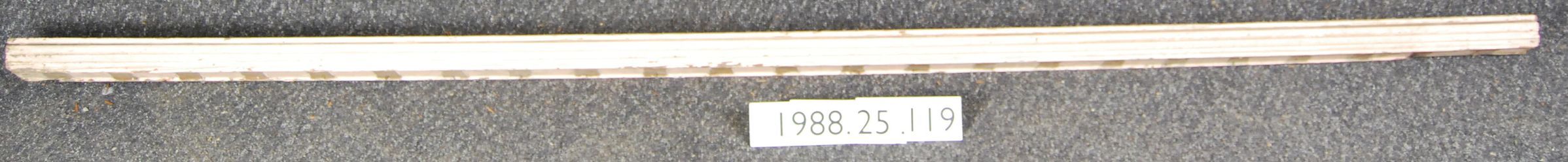 Stair handrail. Compound molding profile. Made of softwood. Painted pink. Type: Inscriptions or Markings: Manufacturer: Place of Manufacture: . Design motif: Style: Finish: Painted Pink