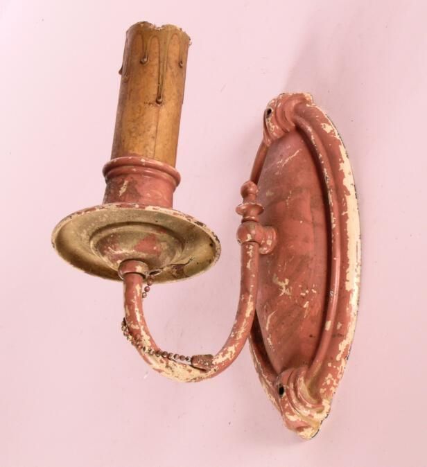 Brass wall bracket. Paper candle; pull chain. Shades: None Fuel: Electric Finish: Polychrome