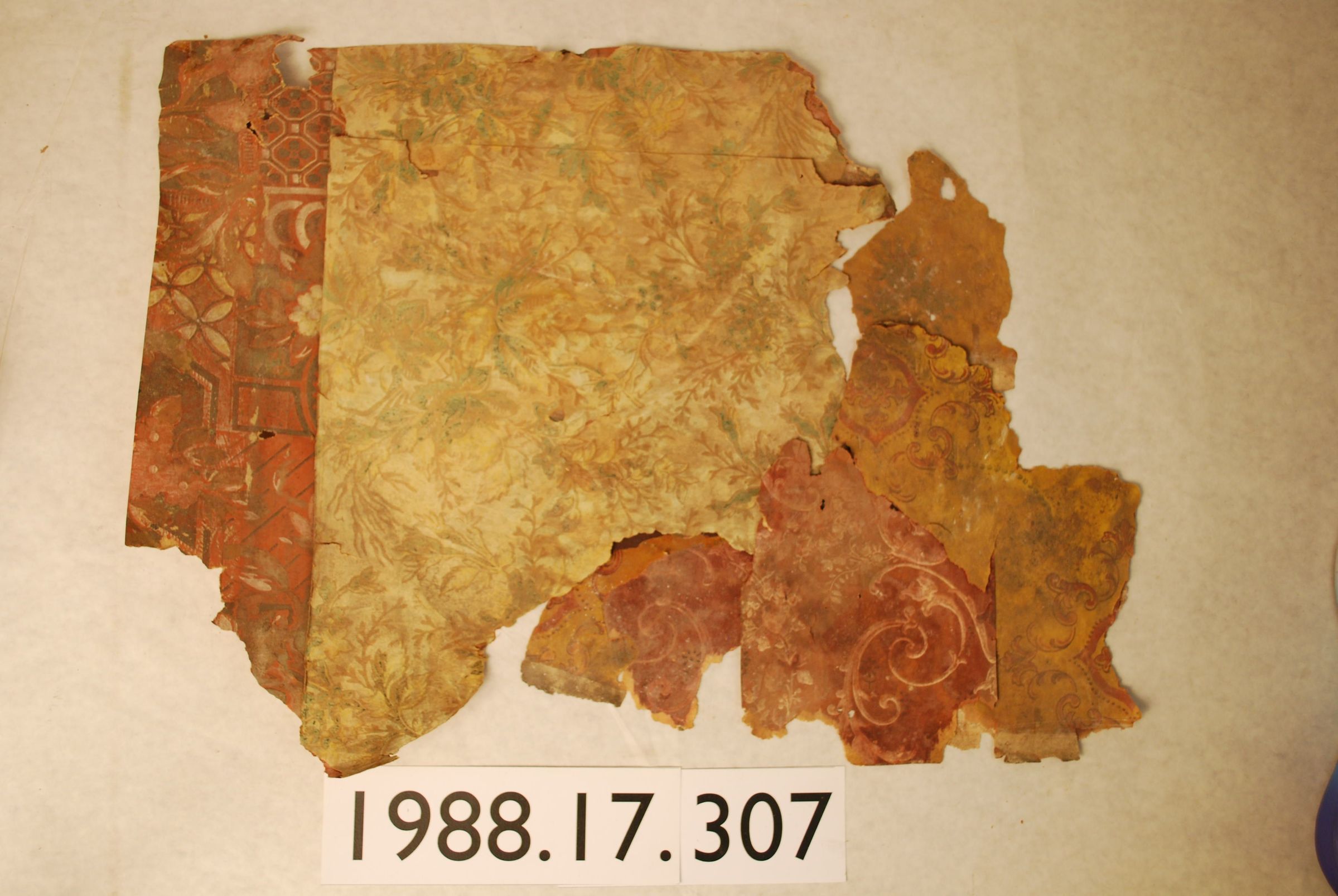 2 types of paper 1) yellow and Green Floral 2) Red and Green geometric patternLexicon