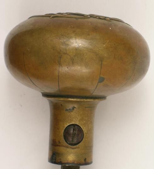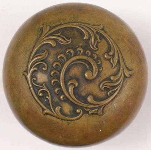 Construction: 2 part stamped / spun Surface Texture: Unpolished Surface Color/Finish: Natural Ornament: Garland Design Name: School: French Remarks: VDA Classification: Group & No: E-111 Comment: Catalog : Company Name: US Steel Date: 1900 Material: Brass Manufacturing Method: Stamped, spun