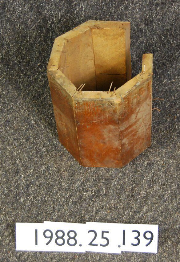 Incomplete octagonal, built-up newel post base . Composed of two detached parts. Made of ash wood. Varnished.
