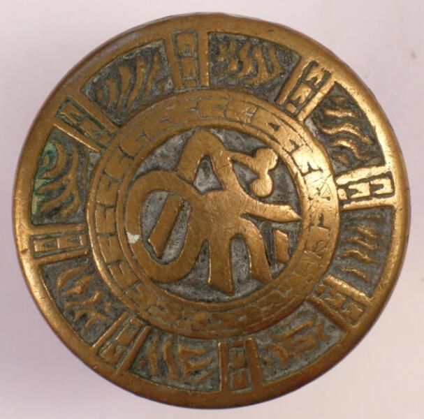 Construction: 1 part cast; brass Surface Texture: Surface Color/Finish: Ornament: Design Name: School: Emblematic Remarks: "Allah" symbol VDA Classification: Group & No: Comment: Catalog : Company Name: Date: Material: Brass Manufacturing Method: Cast
