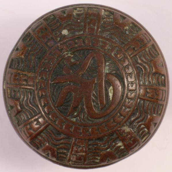 Construction: cast Surface Texture: Surface Color/Finish: Ornament: Design Name: School: Remarks: VDA Classification: Group & No: Comment: Catalog : Company Name: Mallory-Wheeler Date: 1889 Material: Manufacturing Method: See: Doorknob 1988.3.873; Escutcheons 1988.3. lock 1988.3.877