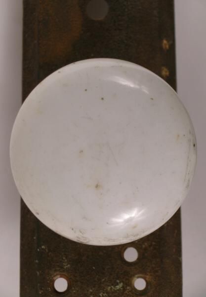 Construction: 1 part Surface Texture: Glazed Surface Color/Finish: Ornament: Plain Design Name: School: Remarks: White porcelain knob, round, flattened VDA Classification: Group & No: Comment: Catalog : Company Name: Date: Material: Porcelain Manufacturing Method: Pressed