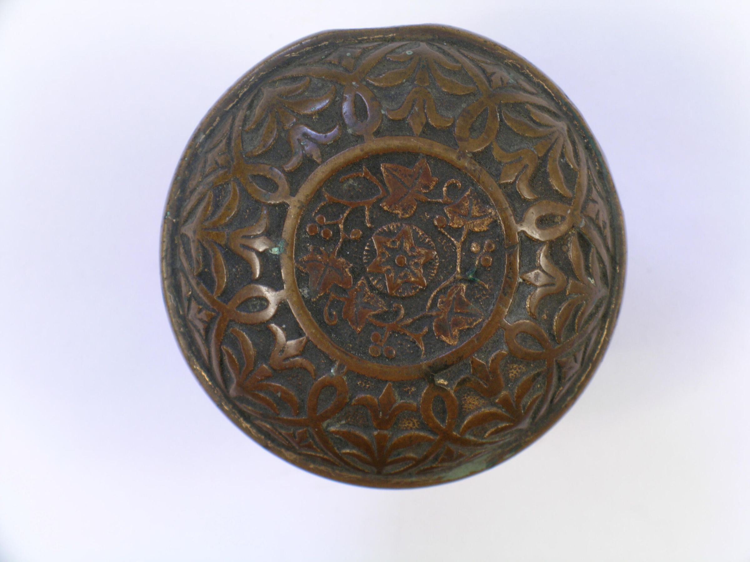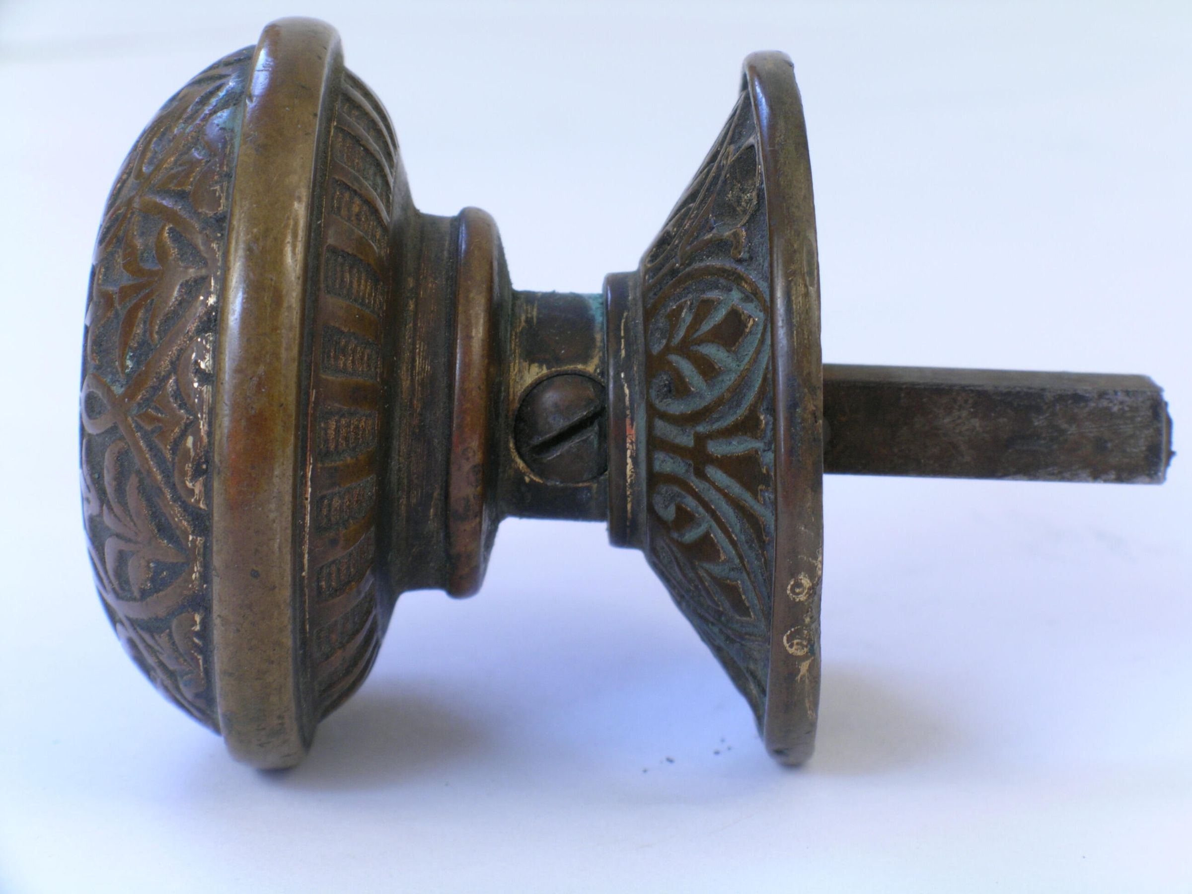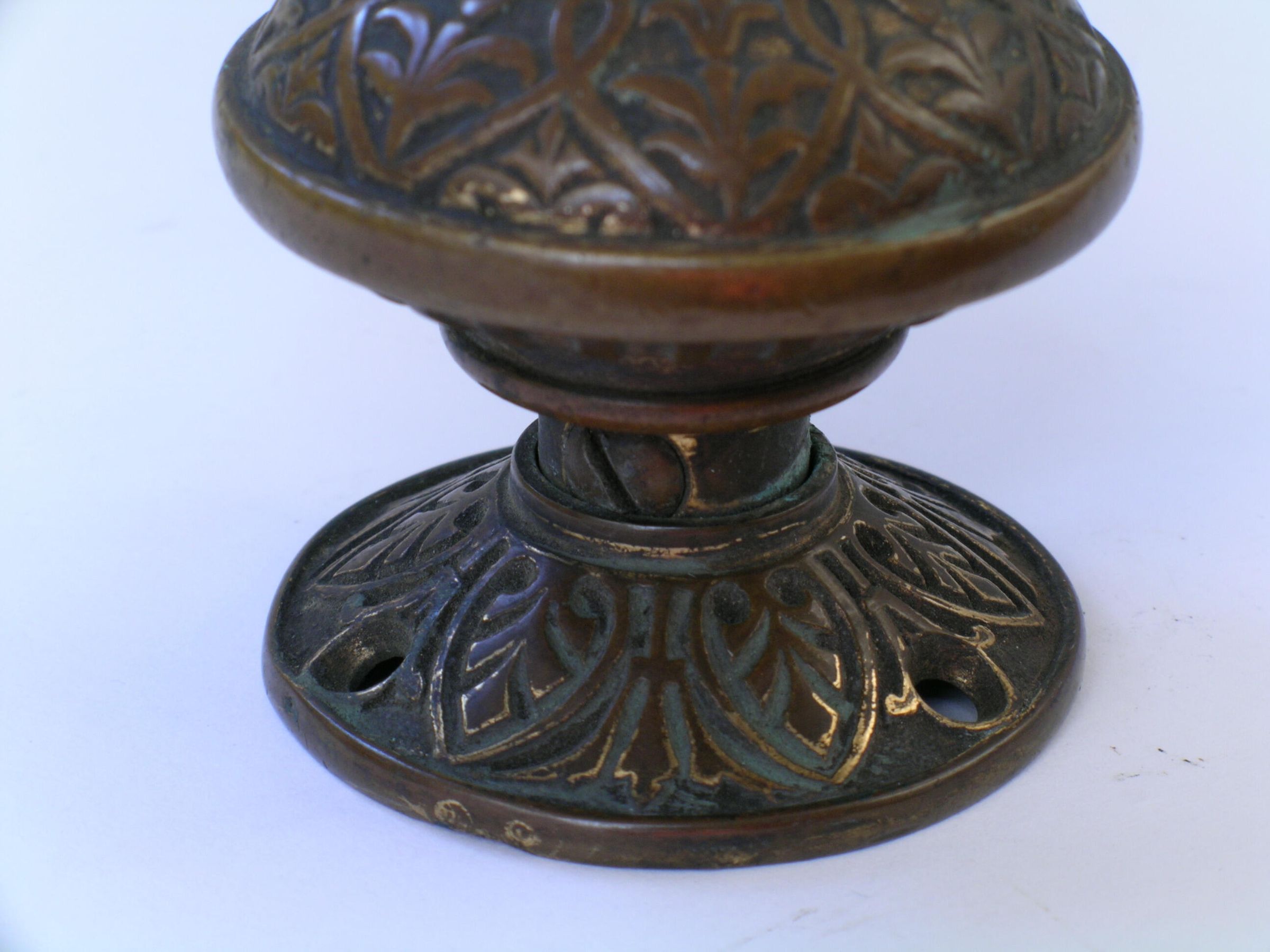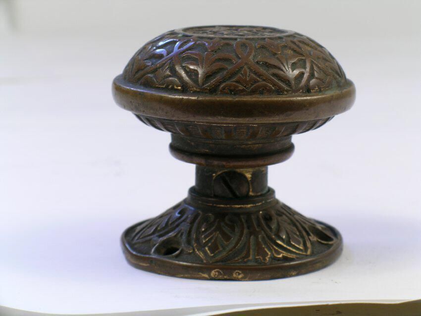 Construction: 1 part cast bronze Surface Texture: Unpolished Surface Color/Finish: Natural / relieved Ornament: eightfold symmetry Design Name: School: Classic Remarks: VDA Classification: Group & No: K 107 Comment: Catalog : Company Name: Russell & Erwin Date: 1975 Material: Bronze Manufacturing Method: Cast / bronze
