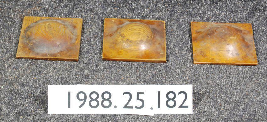 One lot of Three newel post caps. Square, convex top. Made of ash wood. Varnished.