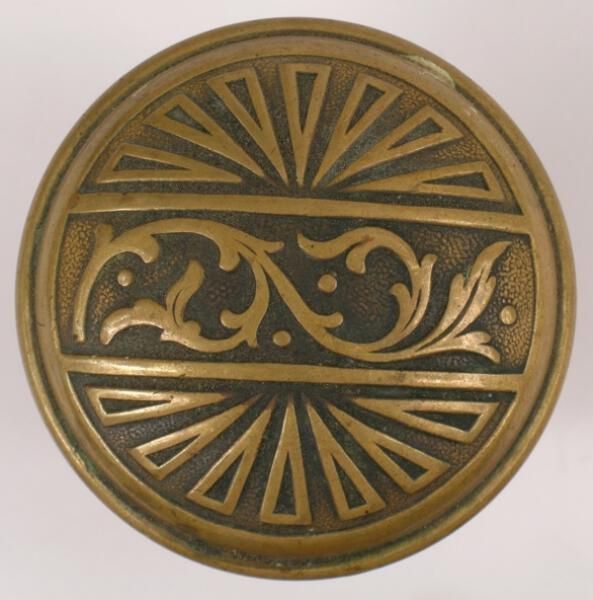 Construction: Stamped brass Surface Texture: Surface Color/Finish: Brass Ornament: Design Name: School: Remarks: VDA Classification: Group & No: F 123 Comment: Catalog : Company Name: Branford Date: 1893 Material: Brass Manufacturing Method: Stamped