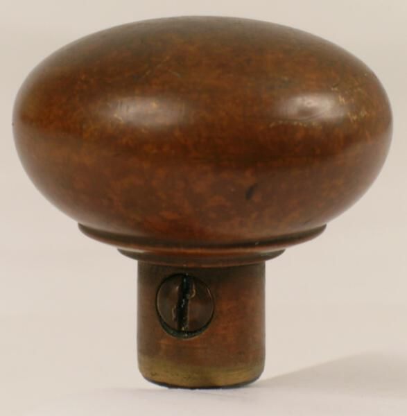 Construction: Cast brass Surface Texture: Surface Color/Finish: Ornament: Design Name: School: Remarks: Attached to corbin lock; small pain brass knob VDA Classification: Group & No: Comment: Catalog : Company Name: Date: Material: Brass Manufacturing Method: Cast