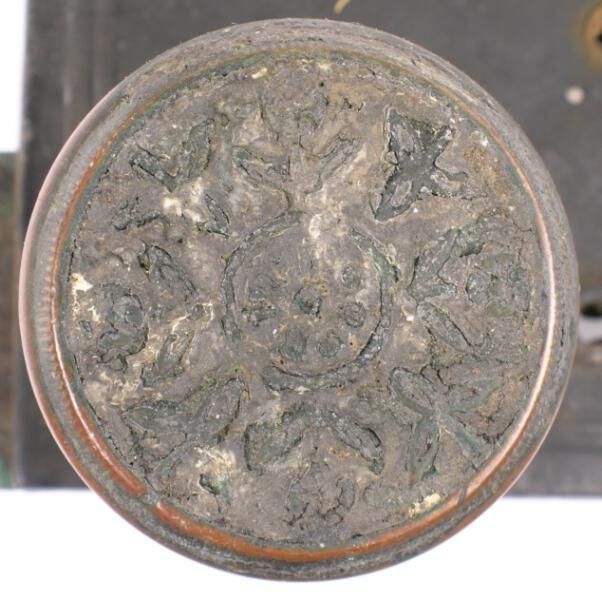 Construction: Cast Surface Texture: Surface Color/Finish: Ornament: Low relief Design Name: School: Remarks: Lock type - mortise VDA Classification: Group & No: H 252 Comment: Catalog : Company Name: Reading Hardware Co. Date: c. 1910 Material: Manufacturing Method: