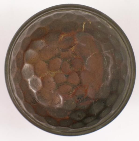 Other #: 494K03 Construction: Cast Surface Texture: Hammered textured Surface Color/Finish: Silver / Nickel plated Ornament: Design Name: School: Remarks: Knob and plate from Knapp House. VDA Classification: Group & No: Comment: No VDA listing Catalog : Company Name: Date: Material: Brass Manufacturing Method: Cast