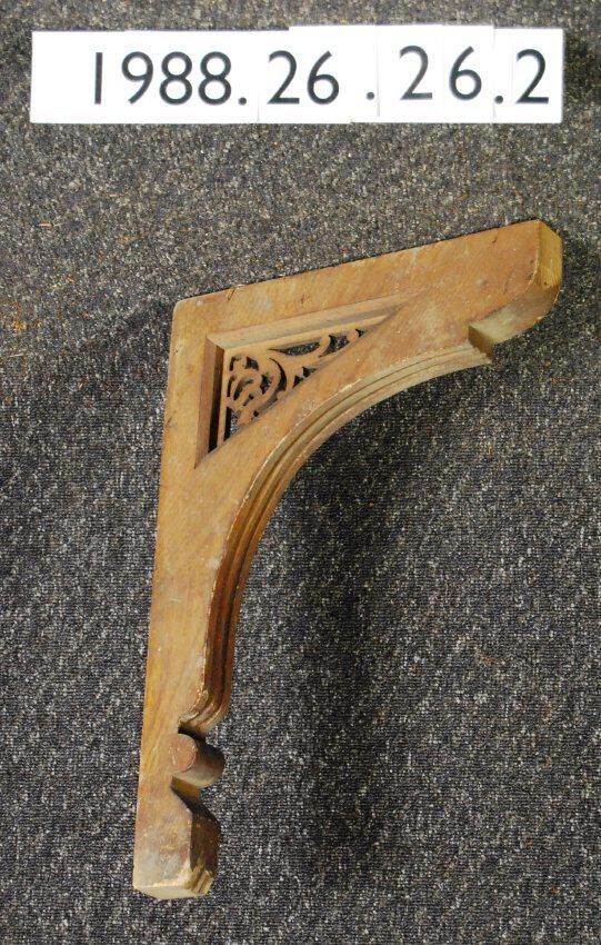 Interior wood bracket. Sides have fret-sawn botanical motif insert. Front is partially reeded. Made of ash wood. Varnished.