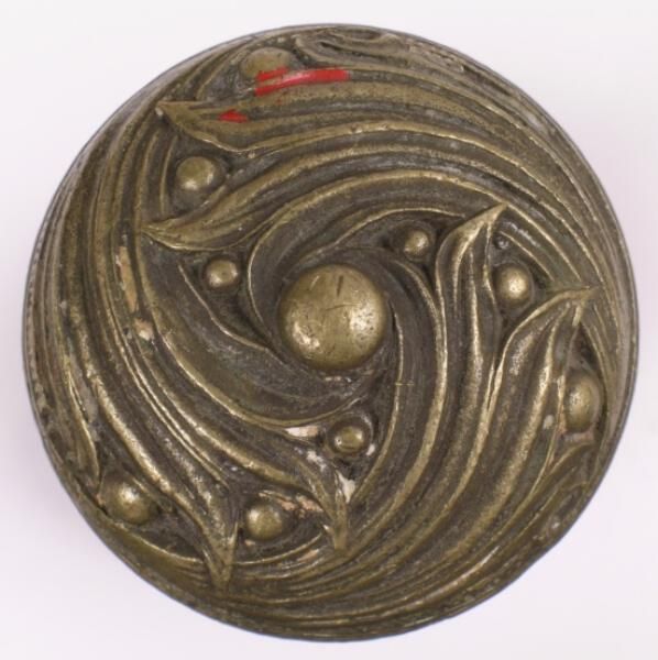 Construction: Cast Surface Texture: Surface Color/Finish: Brass Ornament: Cast Design Name: Cluny School: Romanesque Remarks: VDA Classification: Group & No: E 132 Comment: Catalog : Company Name: Yale & Towne Date: c. 1894 Material: Brass Manufacturing Method: Cast