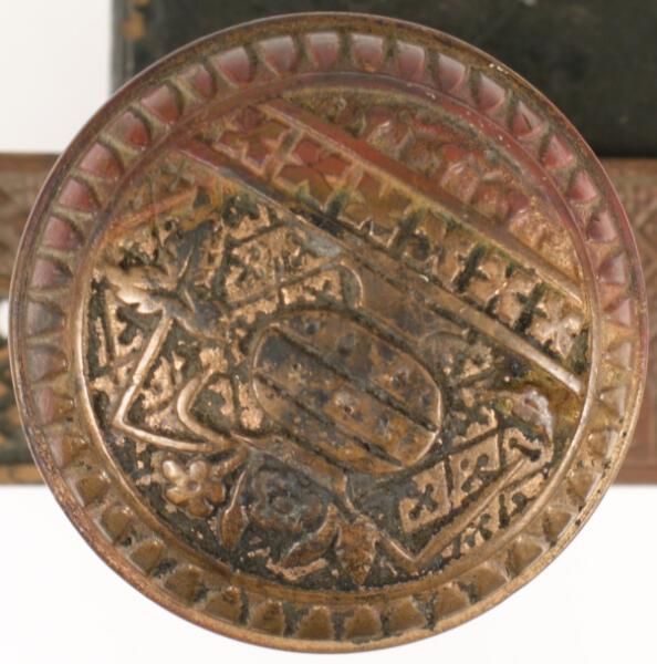 Construction: 2 part ? Surface Texture: Surface Color/Finish: Bronze Ornament: Cast Design Name: Broken Leaf School: Vernacular Remarks: Ornament covers all but shank VDA Classification: Group & No: B 126 Comment: Catalog : Company Name: Lockwood Date: c. 1887 Material: Metal Manufacturing Method: Cast Bronze