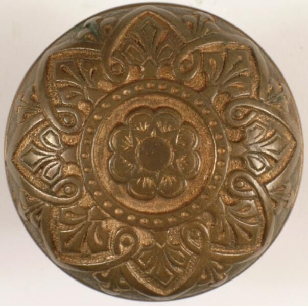 Construction: 2 part Surface Texture: Surface Color/Finish: Bronze - relieved Ornament: Cast Design Name: School: Classic Remarks: VDA Classification: Group & No: K 104 Comment: Catalog : Company Name: Russell & Erwin Date: 1899 p. 202 Material: Metal - Bronze Manufacturing Method: Cast