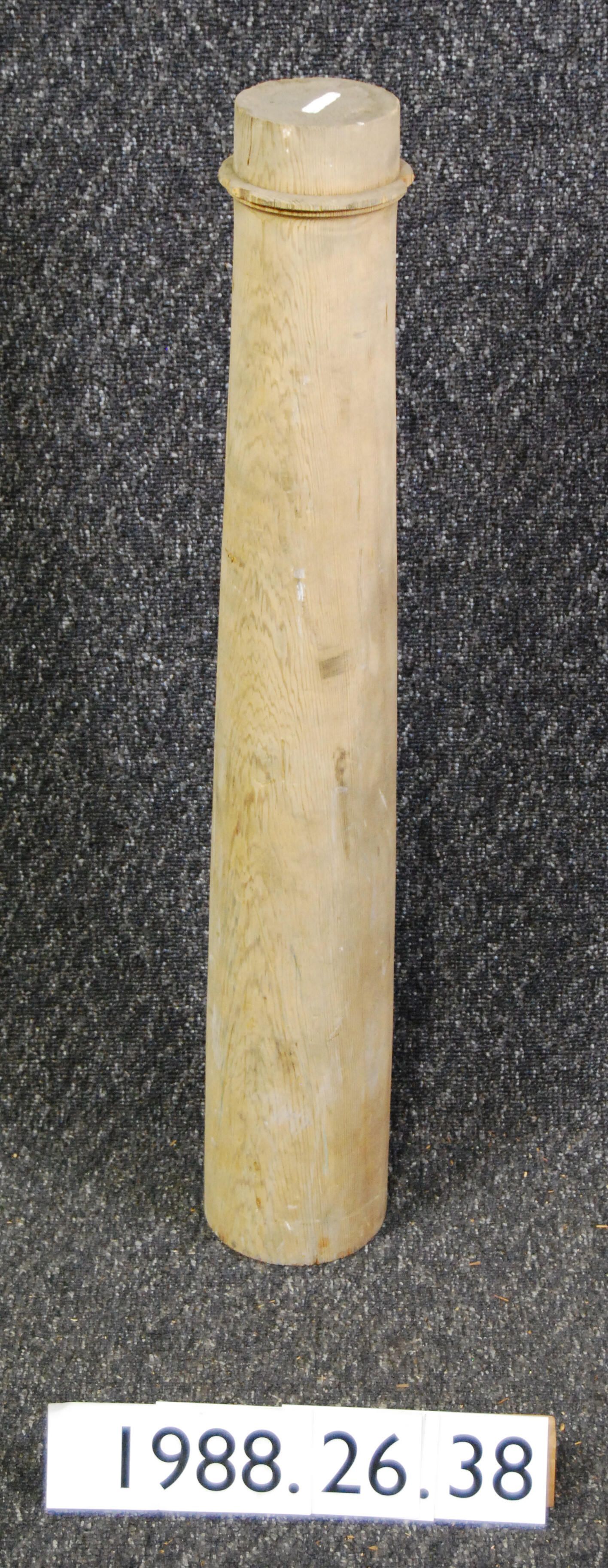 Interior or exterior wood classical revival style Tuscan-column. Lower portion is truncated. Stripped of finish. Type: Inscriptions or Markings: Manufacturer: Place of Manufacture: Design motif: Style: Finish: Stripped of Finish