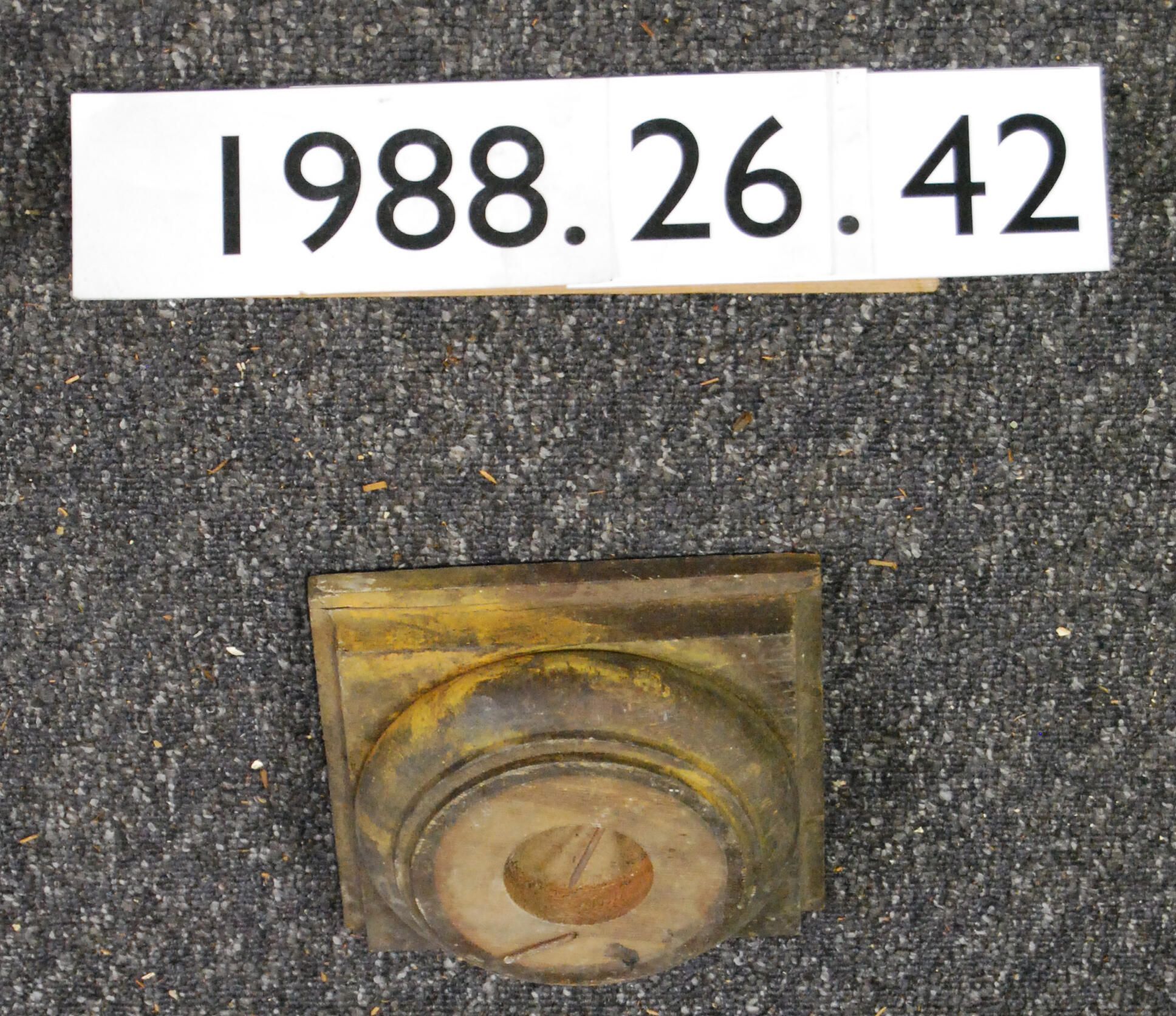 Interior wood classical revival style capital. Cracked on one of the edges. Original varnished finish on softwood. Type: Inscriptions or Markings: Manufacturer: Place of Manufacture: Design motif: Style: Finish: Original Varnish