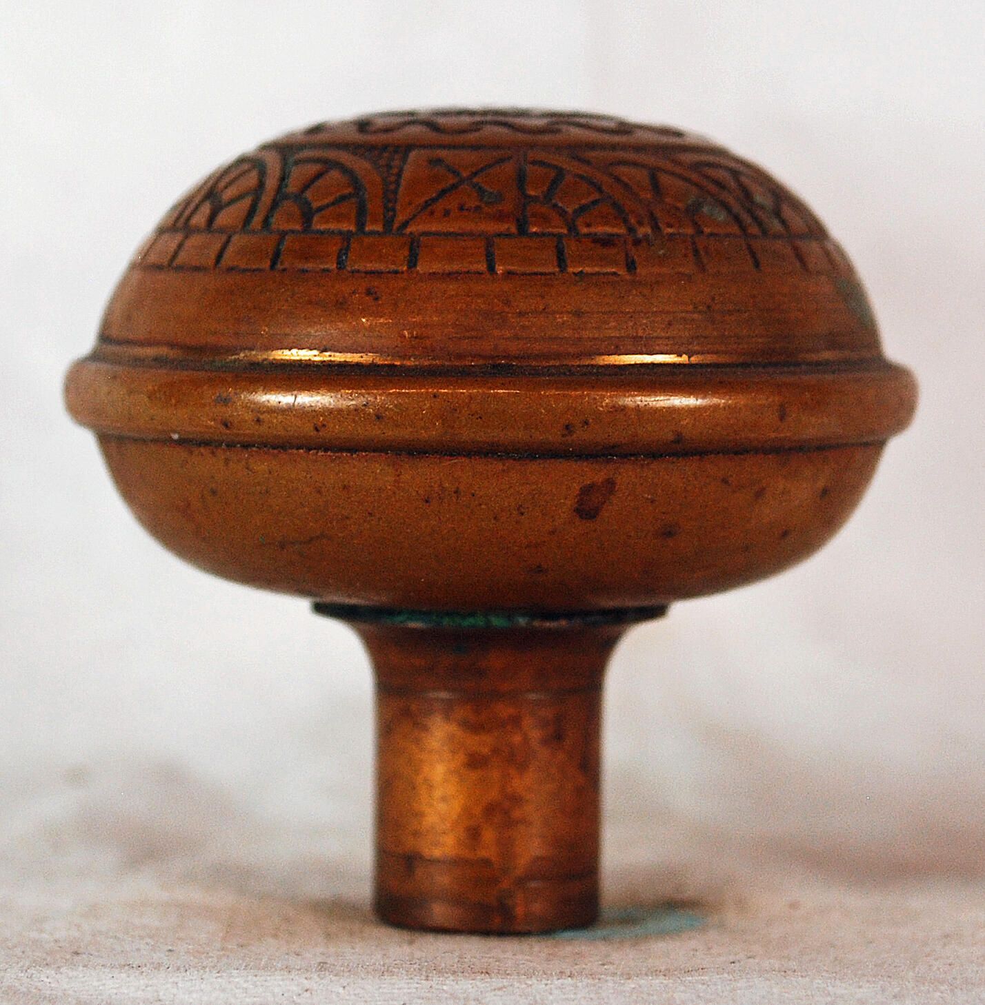 Construction: Surface Texture: Surface Color/Finish: Relieved Ornament: Fourfold symmetry Design Name: Windsor type School: Eastlake Remarks: Not really related to other Windsor designs. VDA Classification: Group & No: H 254 -254A Comment: Combination of the two designs Catalog : Company Name: Reading Type Date: c. 1890 Material: Brass Manufacturing Method: Stamped