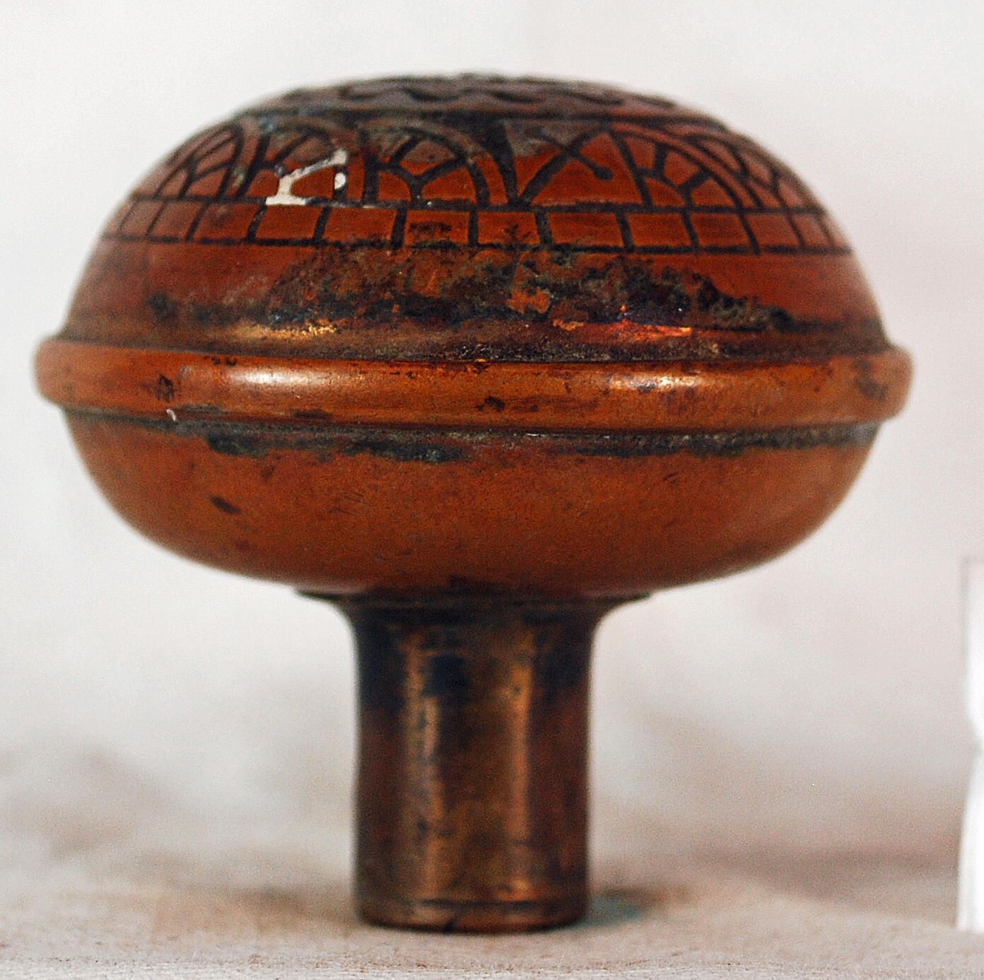 Construction: Surface Texture: Surface Color/Finish: Relieved Ornament: Fourfold symmetry Design Name: Windsor type School: Eastlake Remarks: Not really related to other Windsor designs. VDA Classification: Group & No: H 254 -254A Comment: Combination of the two designs Catalog : Company Name: Reading Type Date: c. 1890 Material: Brass Manufacturing Method: Stamped