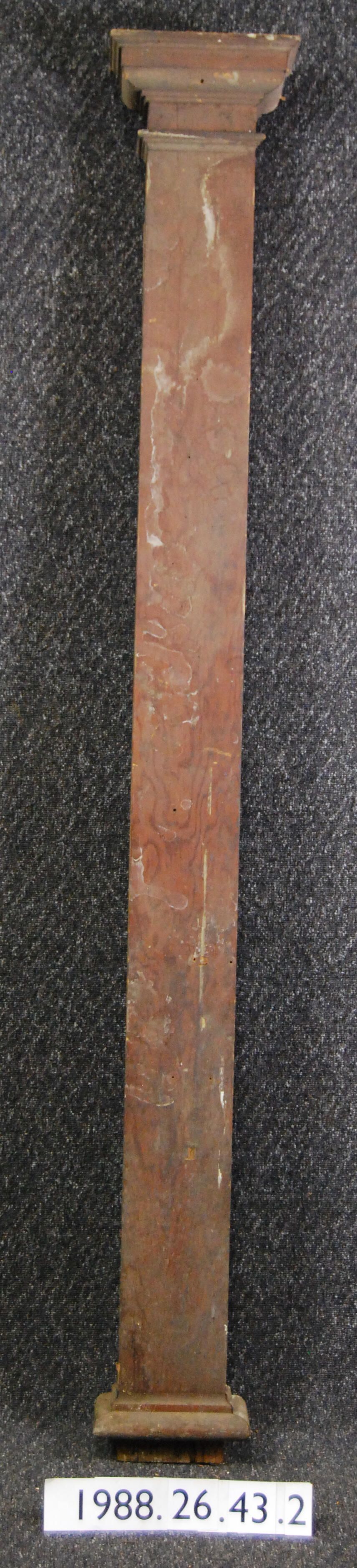 Interior wood classical revival style pilaster. Has compound moldings, moldings missing. Made of Douglas Fir, varnished. Type: Inscriptions or Markings: Manufacturer: Place of Manufacture: Design motif: Style: Finish: Varnished