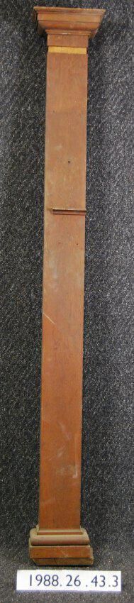 Interior wood classical revival style pilaster. Has compound moldings, moldings missing. Made of Douglas Fir, varnished. Type: Inscriptions or Markings: Manufacturer: Place of Manufacture: Design motif: Style: Finish: Varnished