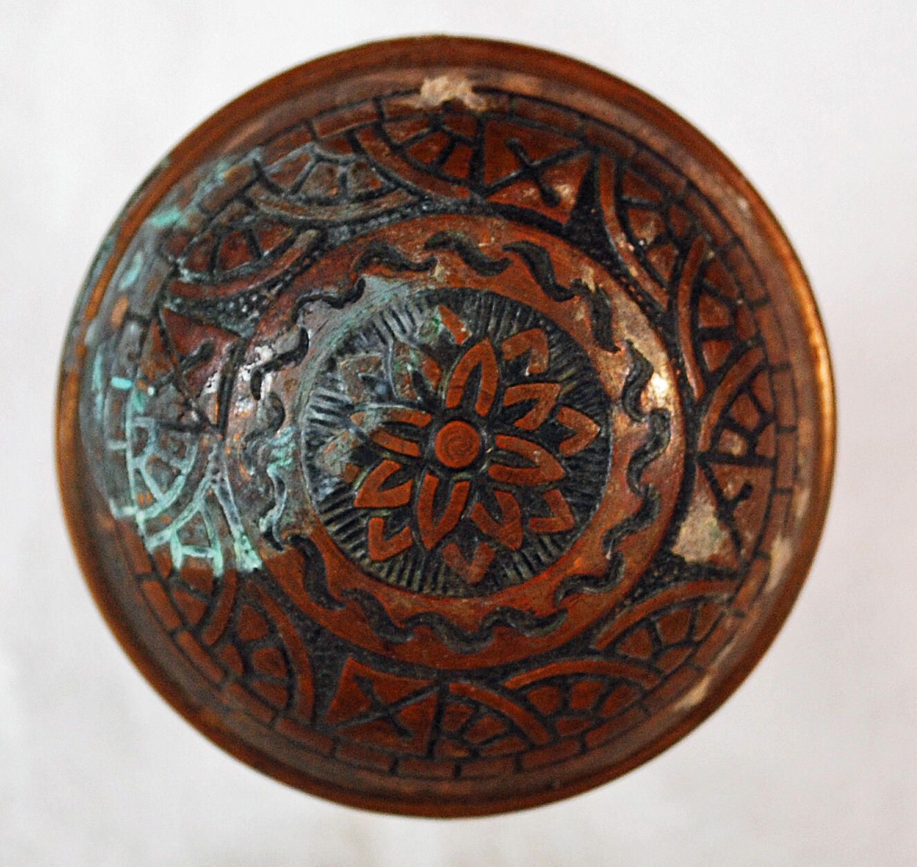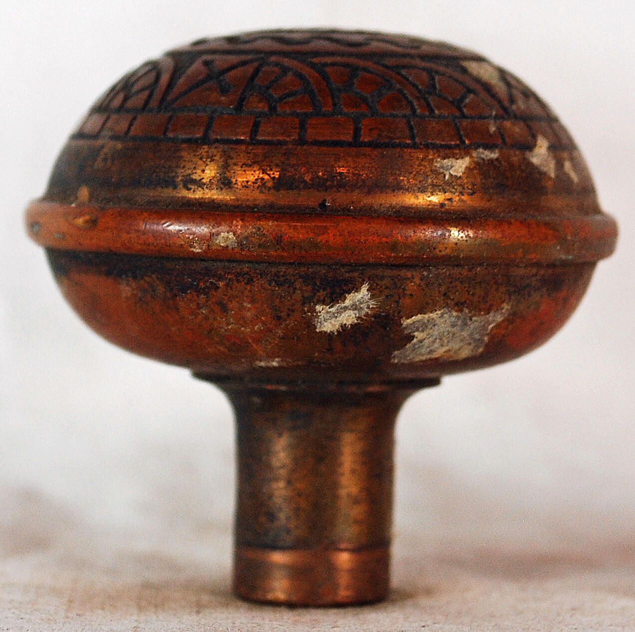 Construction: Surface Texture: Surface Color/Finish: Relieved Ornament: Fourfold symmetry Design Name: Windsor type School: Eastlake Remarks: Not really related to other Windsor designs. VDA Classification: Group & No: H 254 -254A Comment: Combination of the two designs Catalog : Company Name: Reading Type Date: c. 1890 Material: Brass Manufacturing Method: Stamped