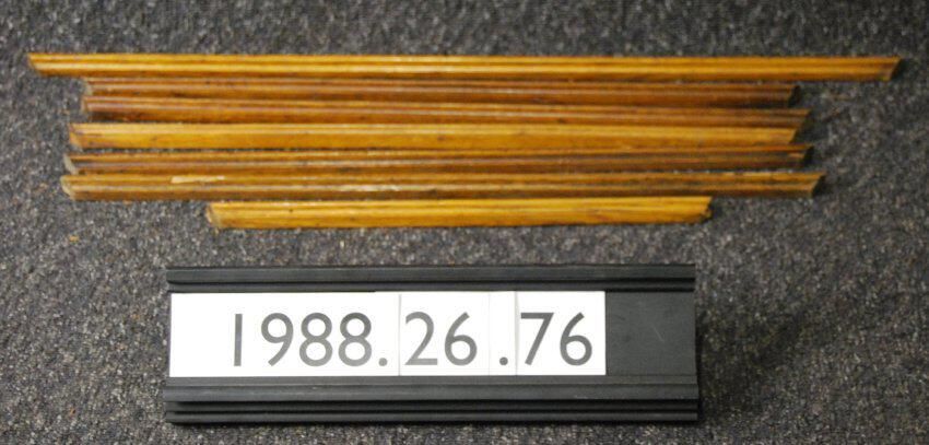 One lot of seven interior wood moldings. Made of oak. Varnished. Type: Inscriptions or Markings: Manufacturer: Place of Manufacture: Design motif: Style: Finish: Varnished