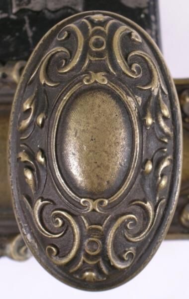 Construction: 3 part Surface Texture: Surface Color/Finish: Bronze Ornament: Cast Design Name: Largo School: Flemish Renaissance Remarks: VDA Classification: Group & No: N 165 Comment: Catalog : Company Name: Yale & Towne Date: 1910 Material: Metal - bronze Manufacturing Method: Cast