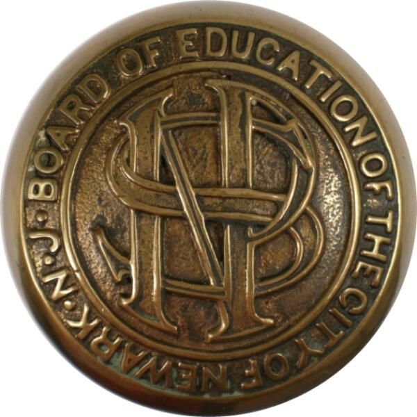 Construction: Cast Surface Texture: Surface Color/Finish: Bronze Ornament: Emblematic, Special Design Name: School: Remarks: Emblematic knob for "Board of Education of the City of Newark N.J. " VDA Classification: Group & No: Comment: Catalog : Company Name: Date: Material: Bronze Manufacturing Method: Cast