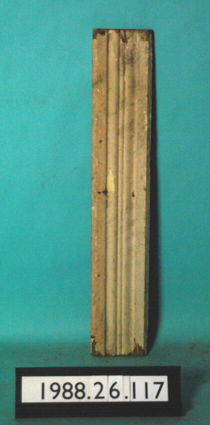 Interior wood molding. (Door or window casings) Made of softwood. Painted beige. Type: Inscriptions or Markings: Manufacturer: Place of Manufacture: Design motif: Style: Finish: Painted :Beige