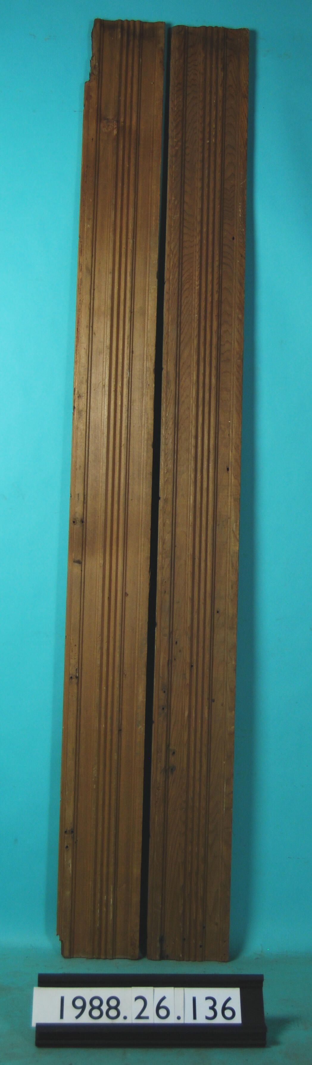One lot of two interior wood moldings. (Door or window casings). Made of soft wood. Stripped. Type: Inscriptions or Markings: Manufacturer: Place of Manufacture: Design motif: Style: Finish: Stripped