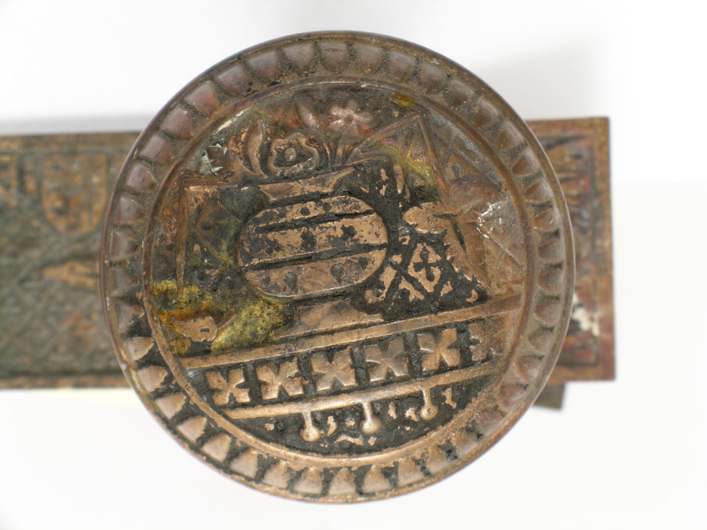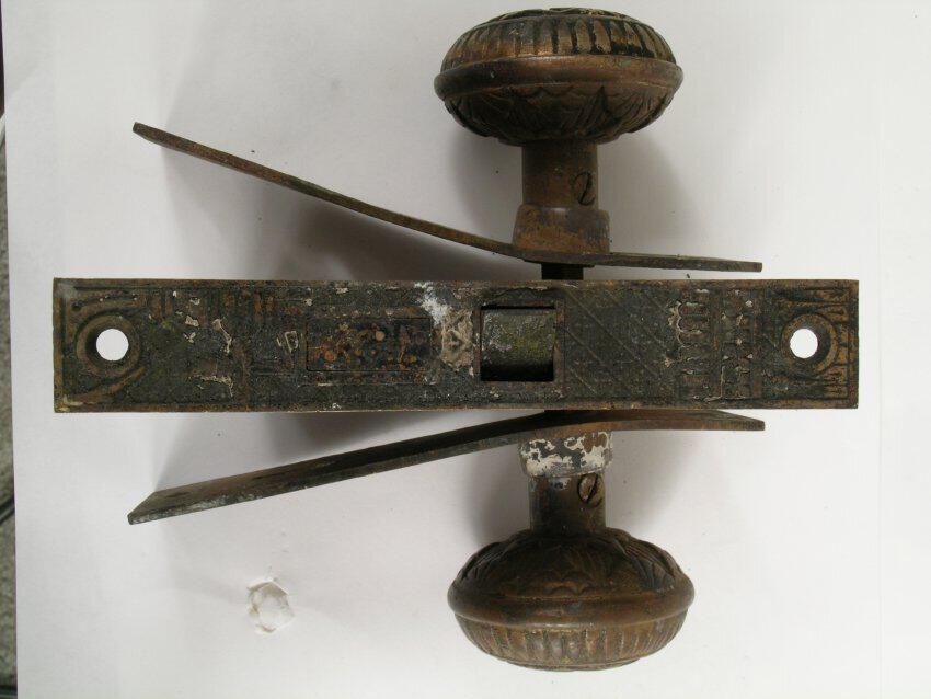 Construction: Cast / Brass Surface Texture: Unpolished Surface Color/Finish: Natural Ornament: Asymmetric Design Name: Broken Leaf School: Eastlake Remarks: VDA Classification: Group & No: B 126 Comment: Catalog : Company Name: Lockwood Date: 1887 Material: Brass Manufacturing Method: Cast