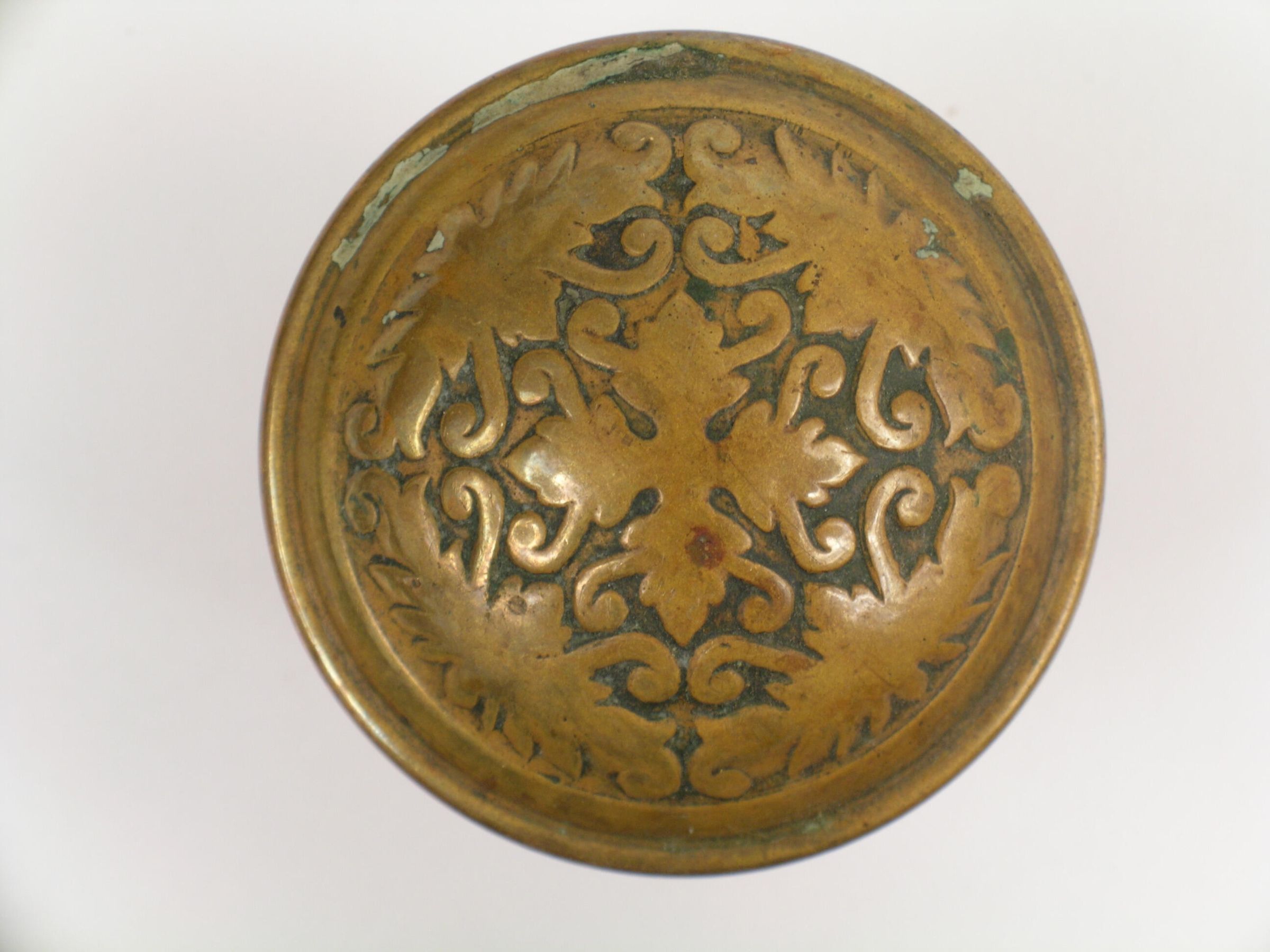 Construction: 2 part stamped Surface Texture: Unpolished Surface Color/Finish: Relieved / Black Ornament: Fourfold Symmetry Design Name: Montello School: Vernacular Remarks: VDA Classification: Group & No: H 272 Comment: Catalog : Company Name: Date: Material: Brass Manufacturing Method: Stamped