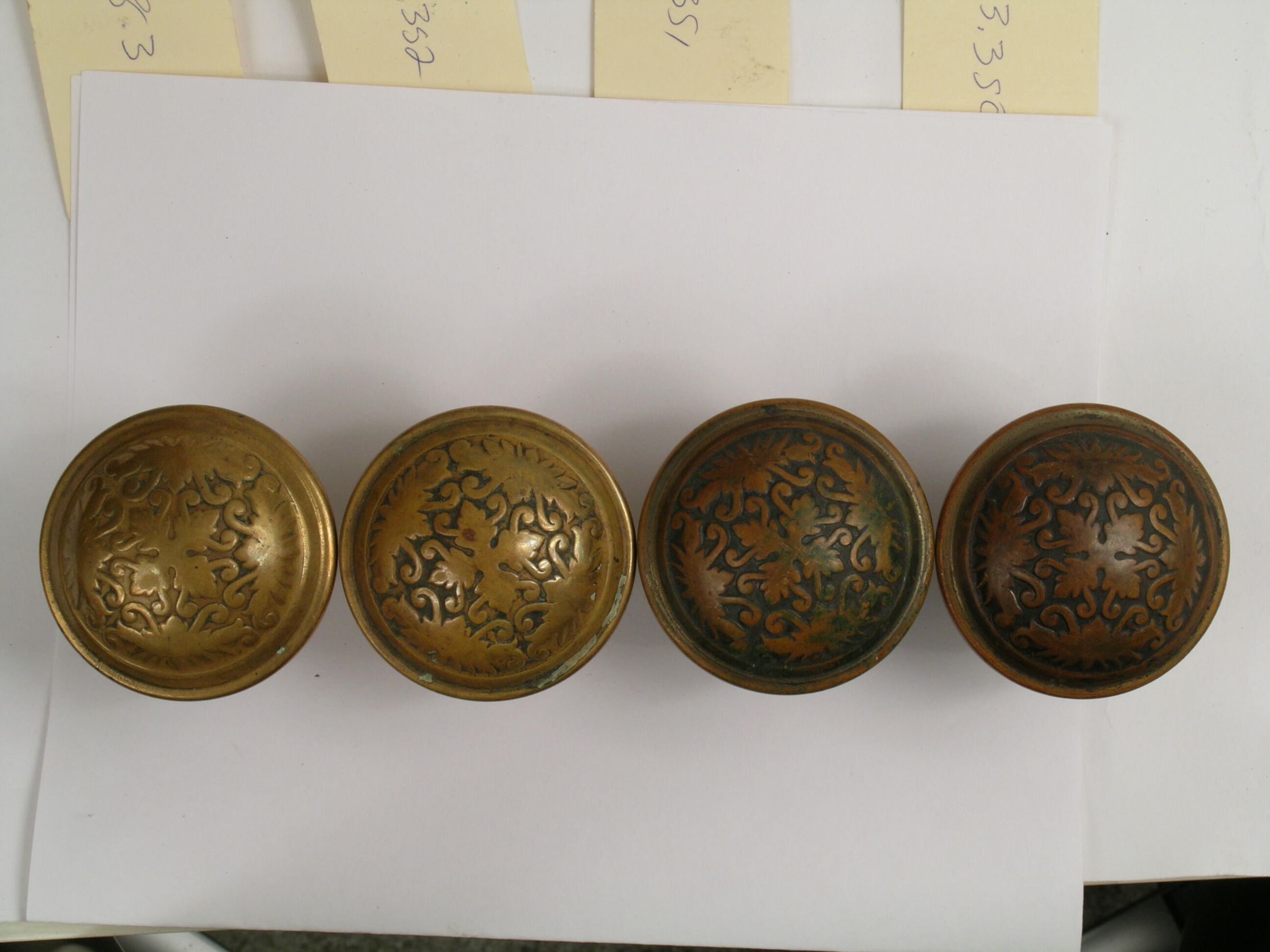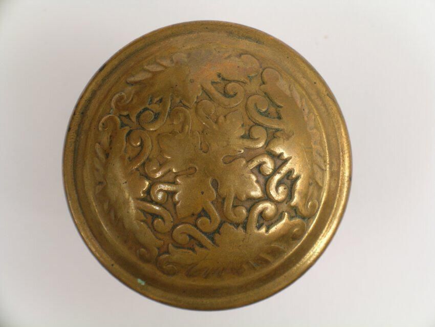 Construction: 2 part stamped Surface Texture: Unpolished Surface Color/Finish: Relieved / Black Ornament: Fourfold Symmetry Design Name: Montello School: Vernacular Remarks: VDA Classification: Group & No: H 272 Comment: Catalog : Company Name: Date: Material: Brass Manufacturing Method: Stamped