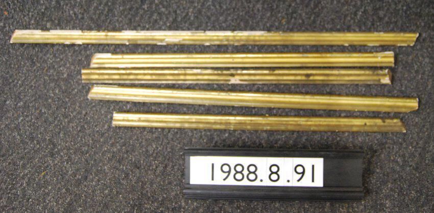 One lot of five picture rail moldings. Made of soft wood with plaster overlay of gilt finish.