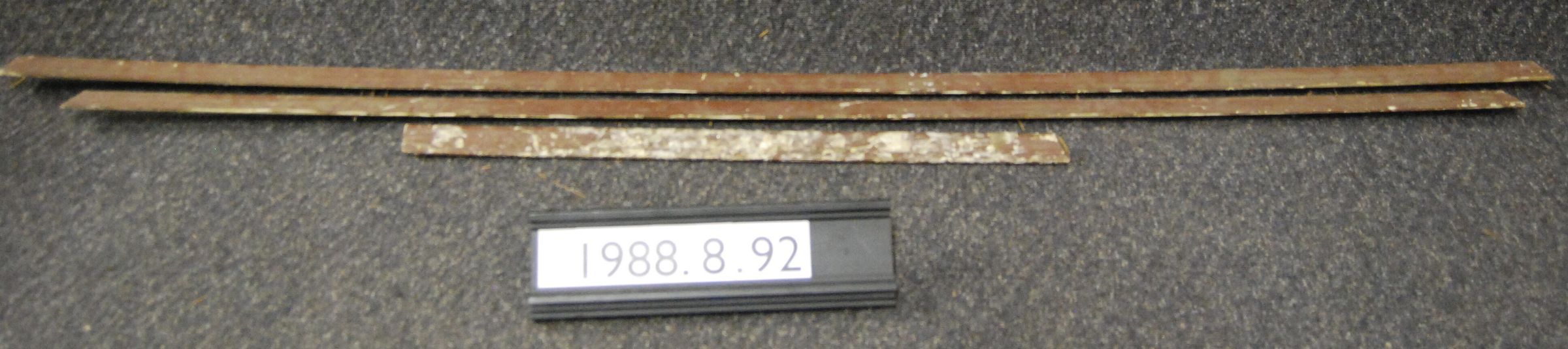 One lot of three picture rail moldings. Made of soft wood. Originally gilt,now painted brown. Inscriptions or Markings: Manufacturer: Place of Manufacturer: Design motif: Style: Finish: Originally gilded gold. Now Painted Brown.
