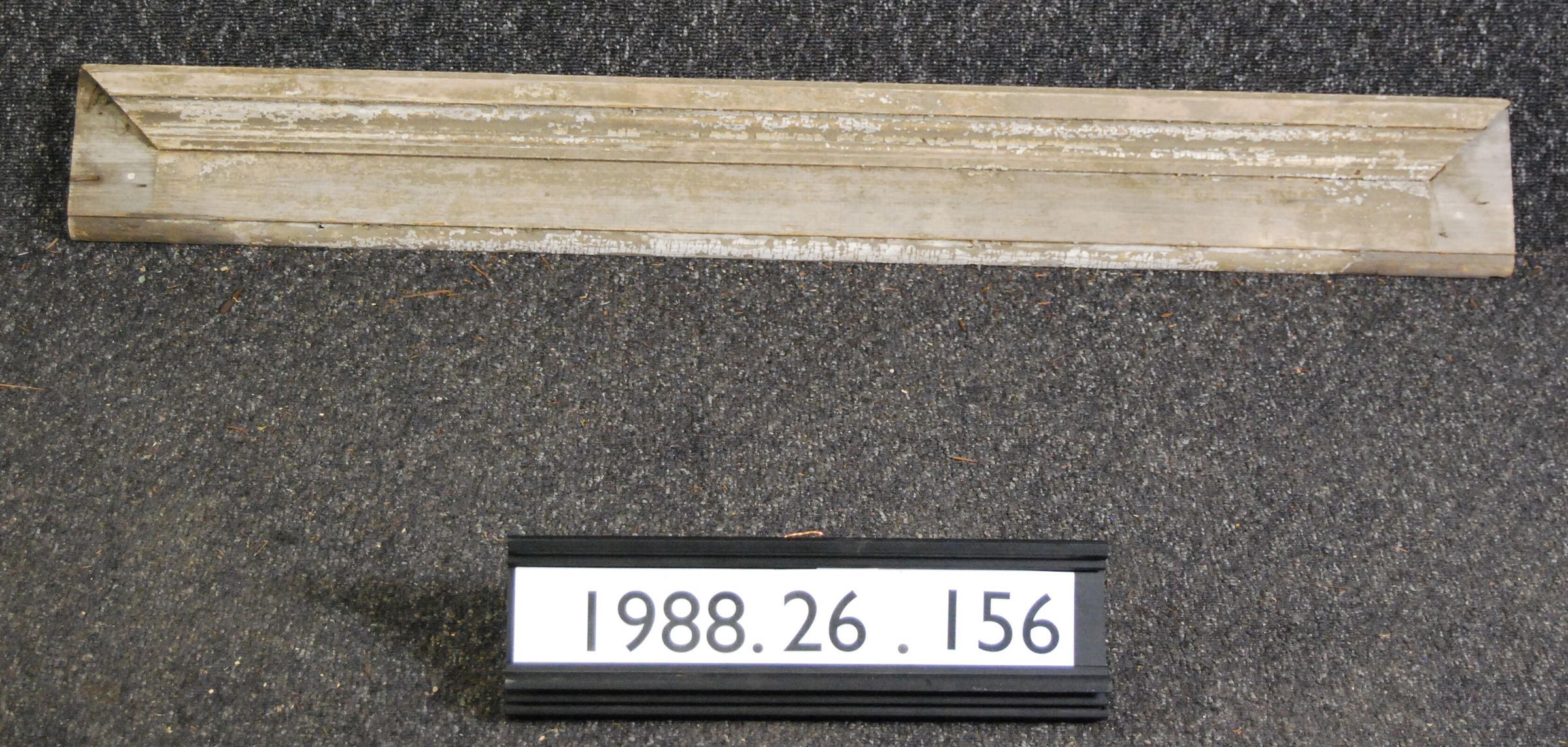 Interior wood molding (door or window header). Made of soft wood. Has remnants of paint. Type: Inscriptions or Markings: Manufacturer: Place of Manufacture: Design motif: Style: Finish: Remnants of Paint