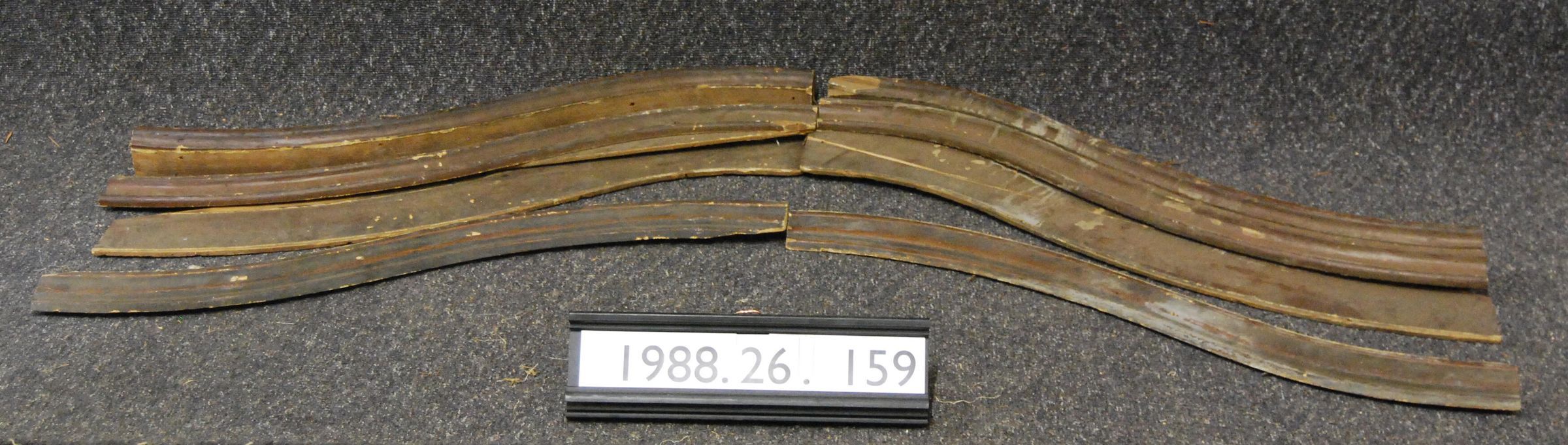 One lot of four interior wood moldings. "French" curved. Some pieces matched. Made of soft wood. Painted brown. Type: Inscriptions or Markings: Manufacturer: Place of Manufacture: Design motif: Style: Finish: Painted Brown