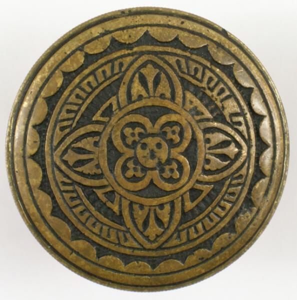 Construction: 3 part wrought Surface Texture: Surface Color/Finish: Ornament: Design Name: Gothic School: Vernacular Remarks: VDA Classification: Group & No: H 247 Comment: Catalog : Company Name: Corbin Date: 1881 pg. 529 Material: Brass Manufacturing Method: Wrought