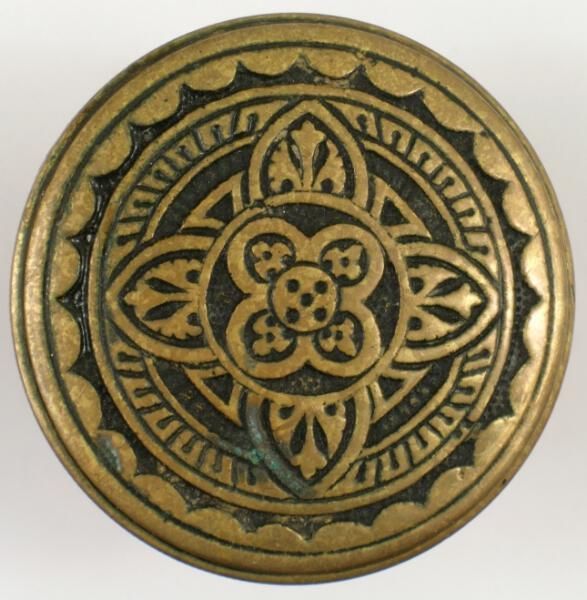 Construction: 3 part wrought Surface Texture: Surface Color/Finish: Ornament: Design Name: Gothic School: Vernacular Remarks: VDA Classification: Group & No: H 247 Comment: Catalog : Company Name: Corbin Date: 1881 pg. 529 Material: Brass Manufacturing Method: Wrought