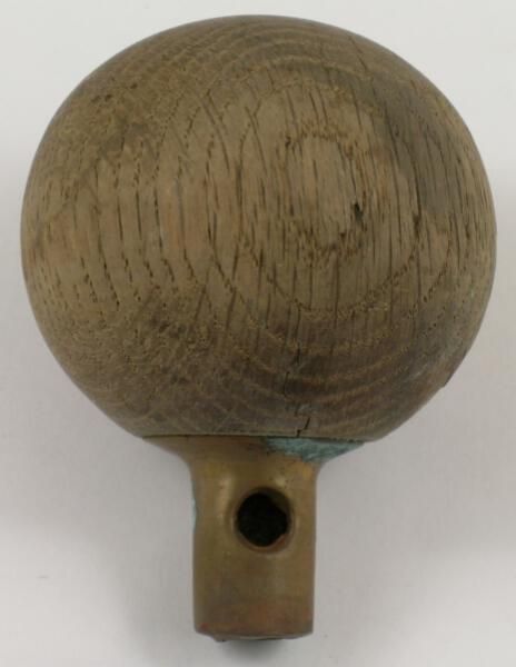Construction: 2 part, turned Surface Texture: Surface Color/Finish: Ornament: Design Name: School: Remarks: VDA Classification: Group & No: Comment: Catalog : Company Name: Date: c. 1902 Material: Oak, brass, plated iron neck Manufacturing Method: Turned