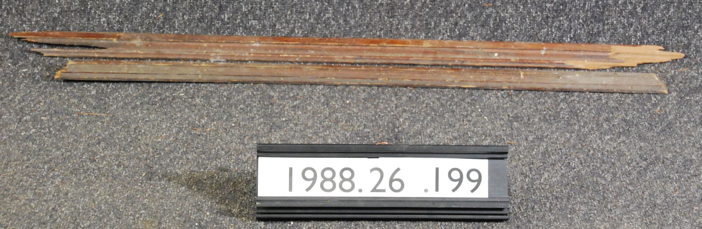 One lot of two interior wood moldings. Made of soft wood. Varnished. Type: Inscriptions or Markings: Manufacturer: Place of Manufacture: Design motif: Style: Finish: Varnished