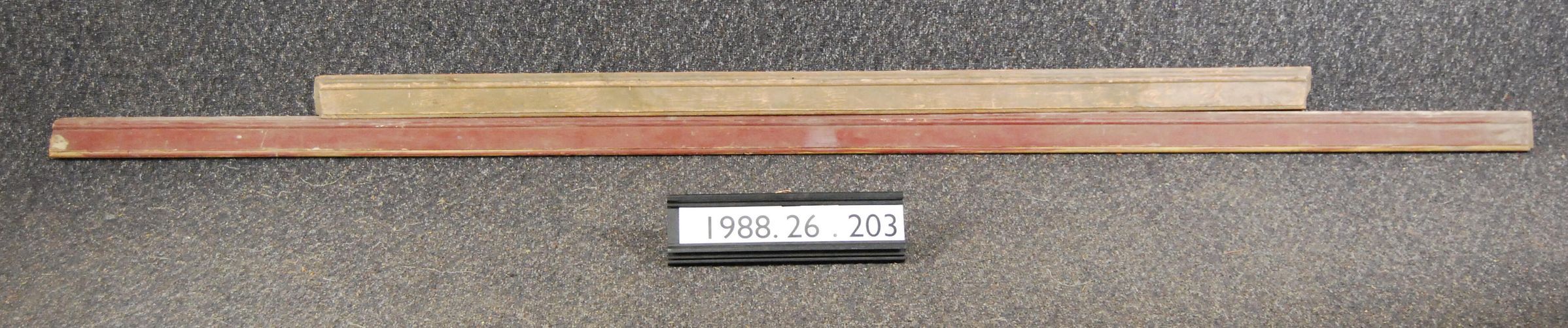 Two interior wood moldings. Made of soft wood. Varnished. Type: Inscriptions or Markings: Manufacturer: Place of Manufacture: Design motif: Style: Finish: Varnished