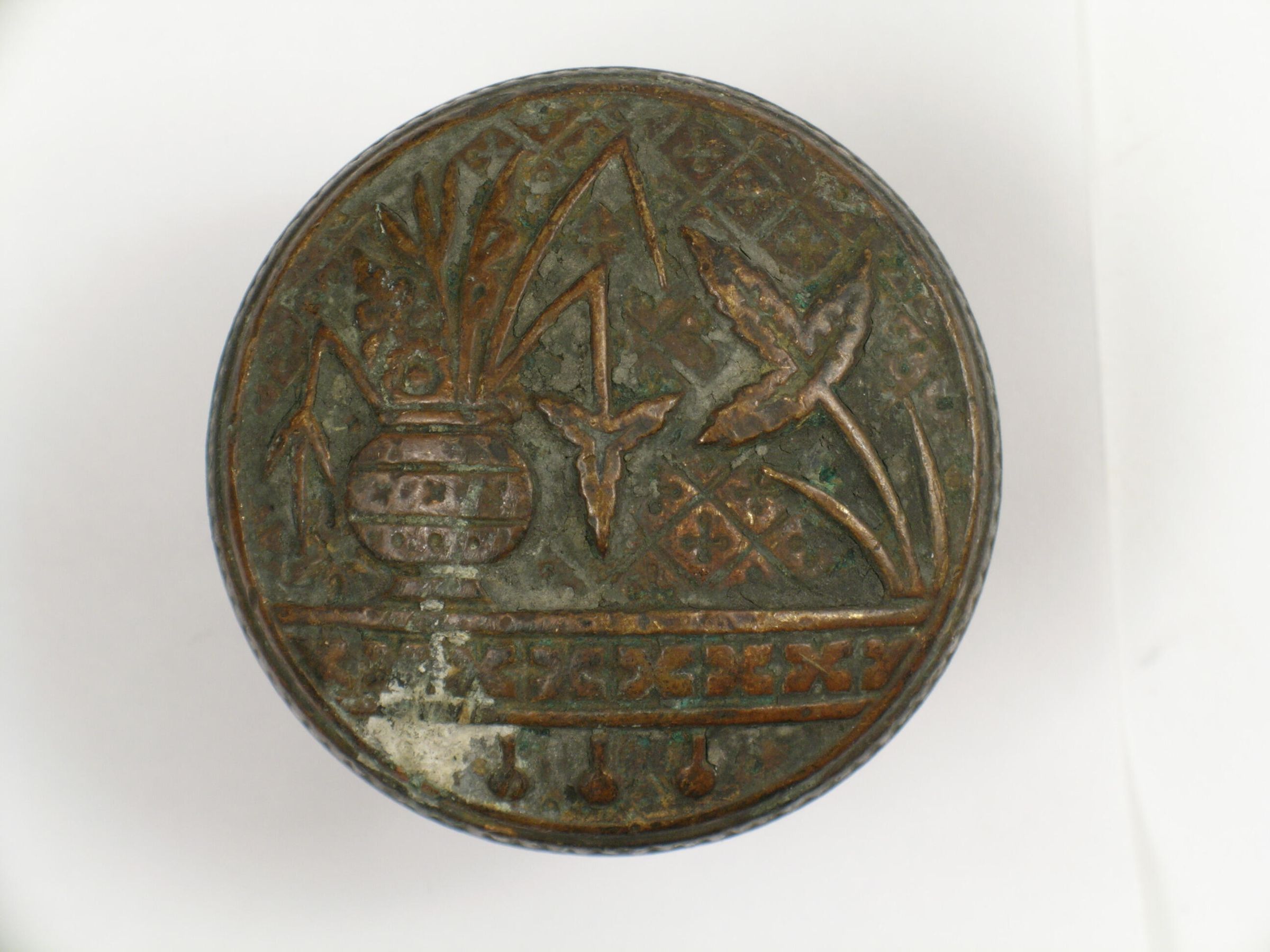 Construction: Cast Surface Texture: Unpolished Surface Color/Finish: Natural Ornament: Assemetric Design Name: Broken Leaf School: Eastlake Remarks: VDA Classification: Group & No: B 125 Comment: Catalog : Company Name: Lockwood Date: 1887 Material: Bronze Manufacturing Method: Cast / Bronze