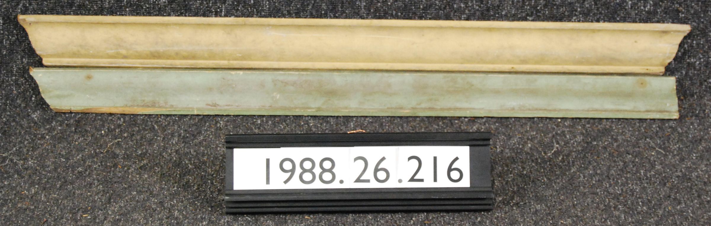 Two interior wood moldings. Made of soft wood. One painted green, one painted yellow. Type: Inscriptions or Markings: Manufacturer: Place of Manufacture: Design motif: Style: Finish: One Painted Green. One Painted Yellow.